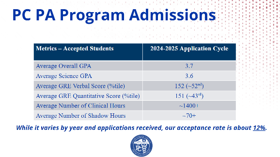 Please note that although we require 200 hours of healthcare experience, competitive applicants often have over 1,000+ hours of healthcare experience that includes direct patient contact upon acceptance to the PA program.